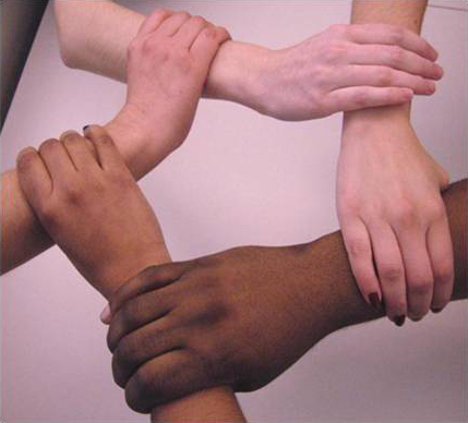 It can be seen in the image Holding Hands, the variations of skin color within the human race.